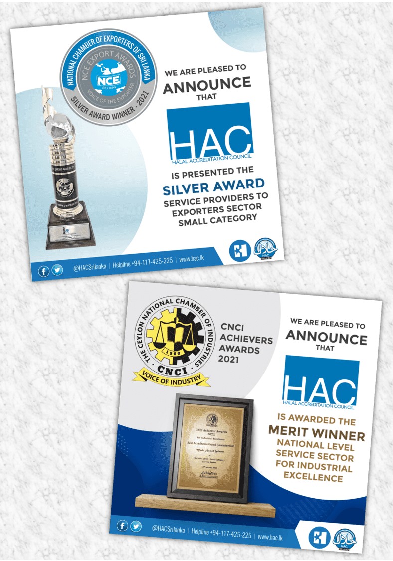 HAC, having obtained its accreditation and certification for standards GSO 2055-2:2015, ISO/IEC 17065:2012, ISO 9001 and recognitions from the aforementioned sovereign states, incorporates in its standards the global requirements, which are evaluated through a meticulous system of audits conducted at its client’s premise. This in turn enables Sri Lankan Halal-certified food manufacturers to comply with relevant standards whilst enabling them to export their produce, competing in the global market.